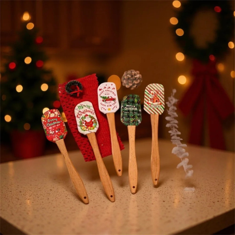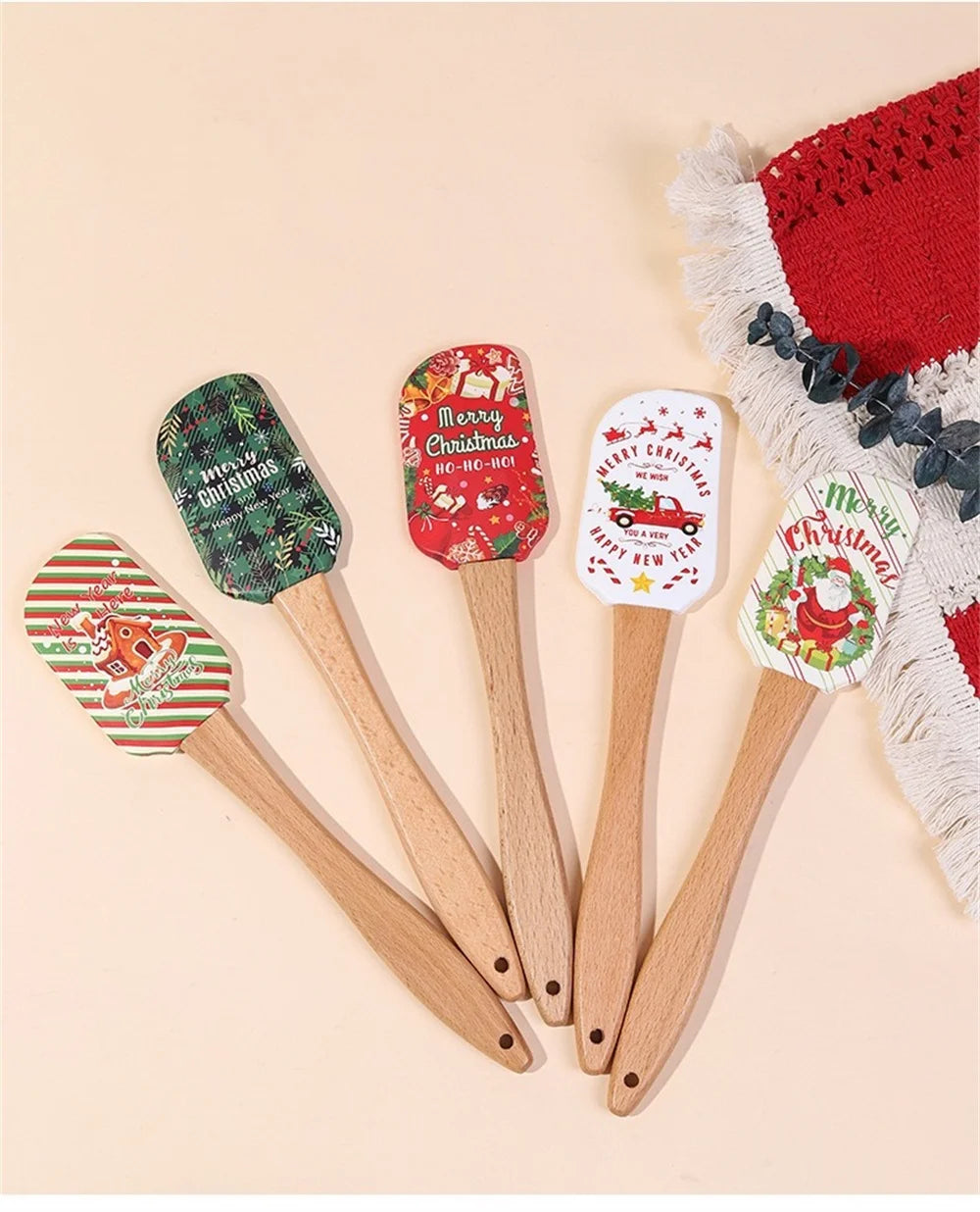 Item indispensável para o Natal: uma espátula de silicone para massa com estampas natalinas, perfeita para mexer, raspar e misturar. Ideal para preparar deliciosas sobremesas natalinas.