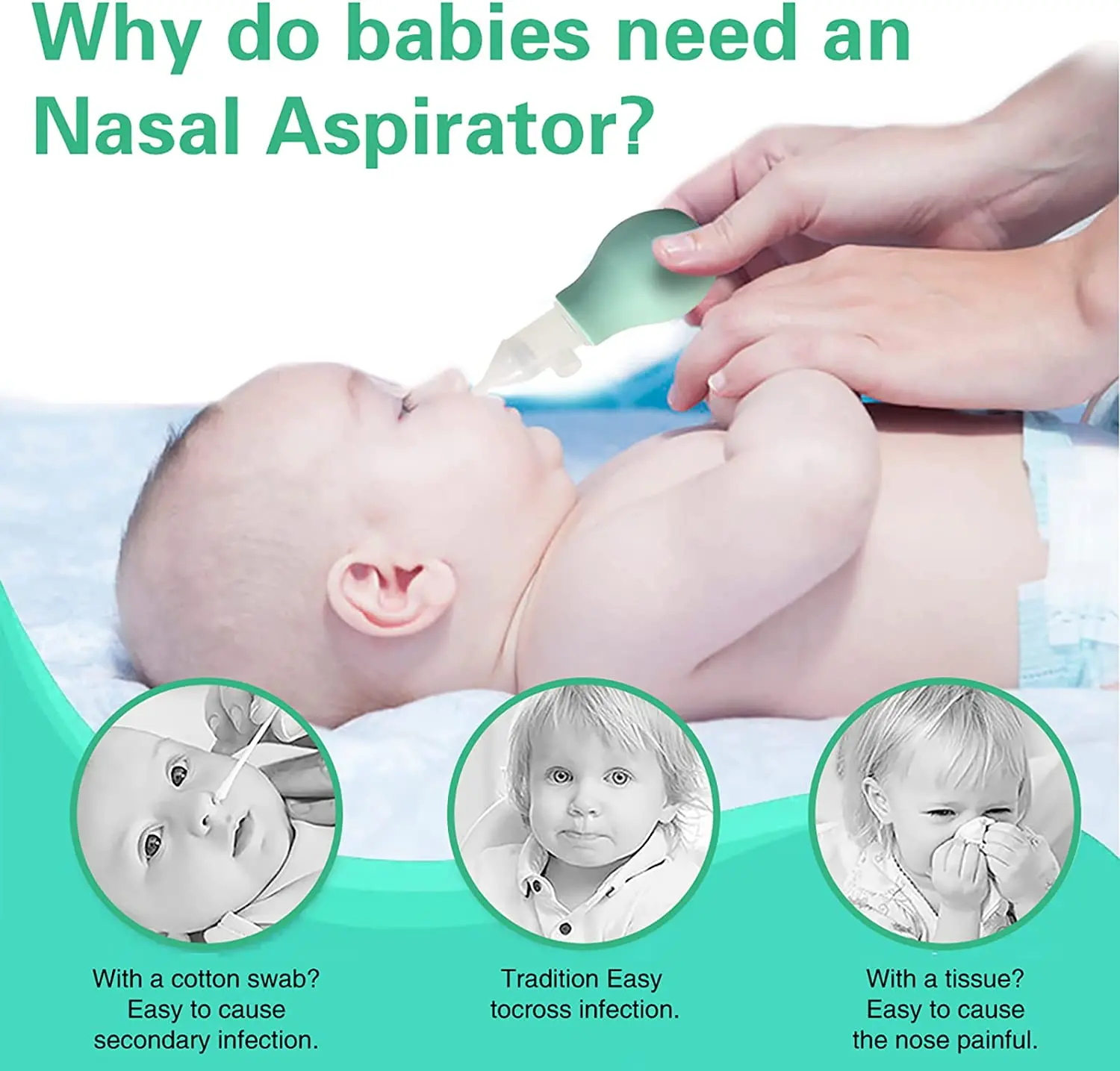 Soft & Safety Nozzles: Our nasal aspirator easy to operate & convenient, carry with silicone suction nozzle, super soft and without hurting the nasal cavity, take good care of baby delicate noses.