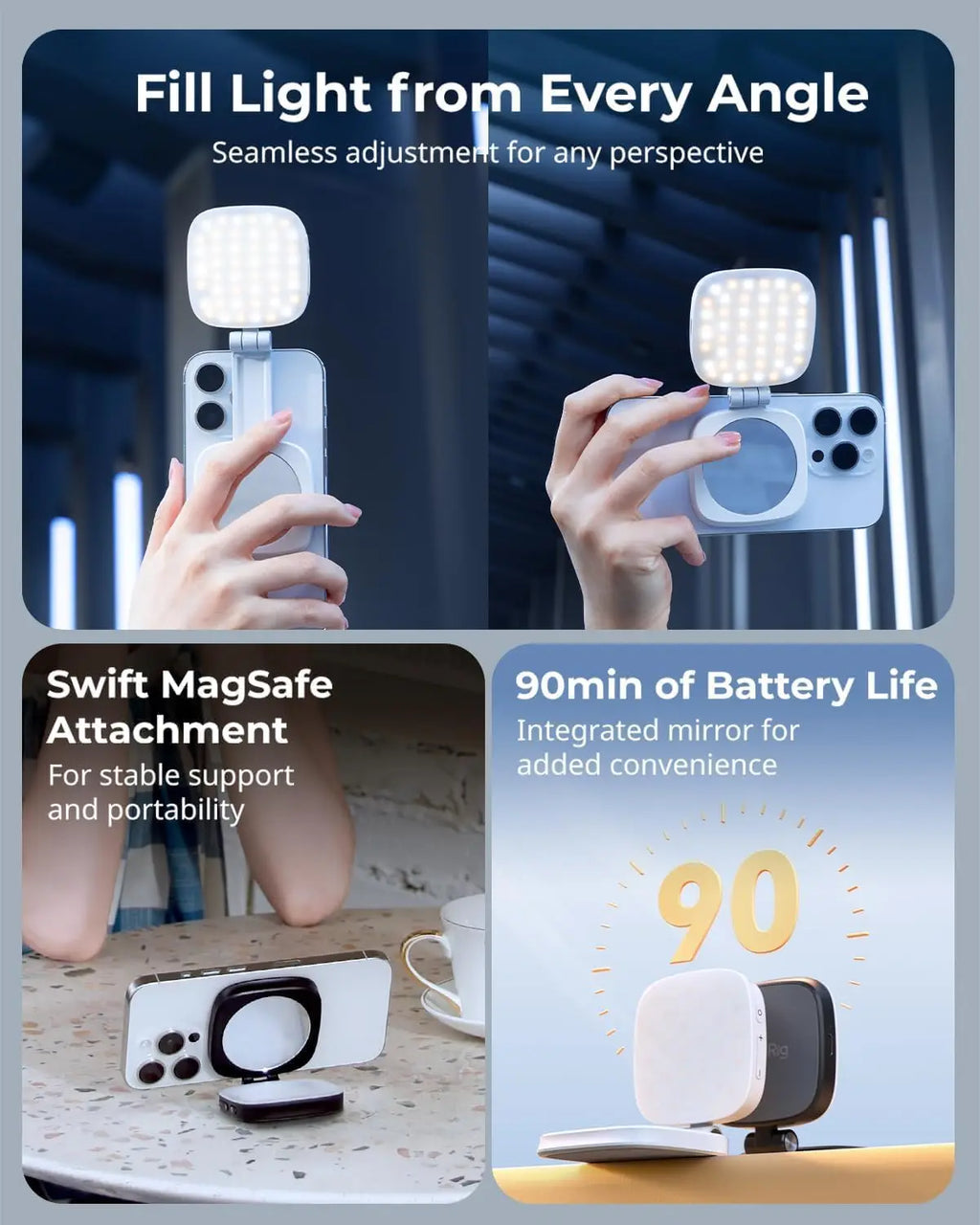 MAGNETIC ATTACHMENT: Instantly secures to Mag-Safe compatible phones with strong magnetic connection for stable lighting during selfies and video calls